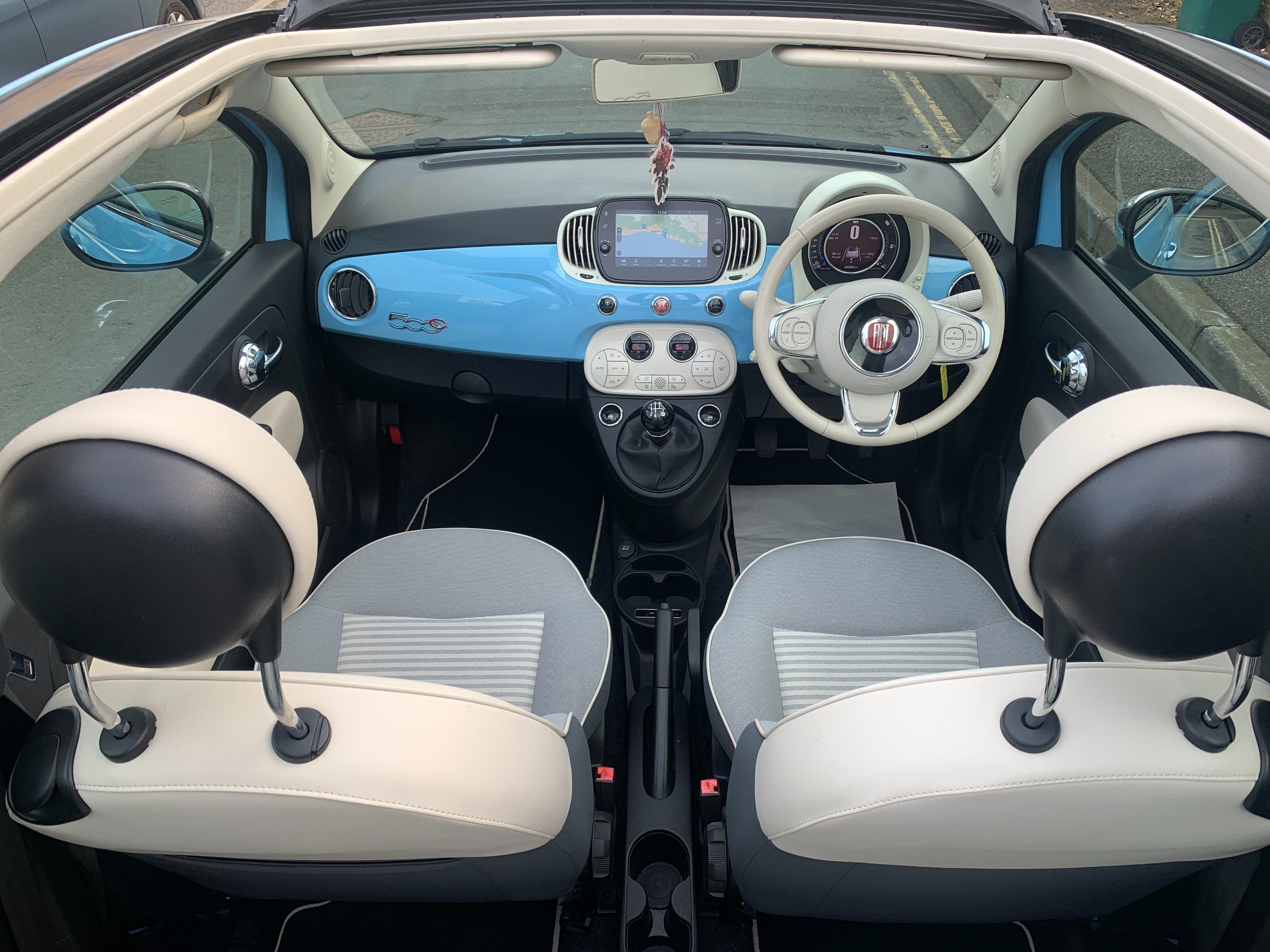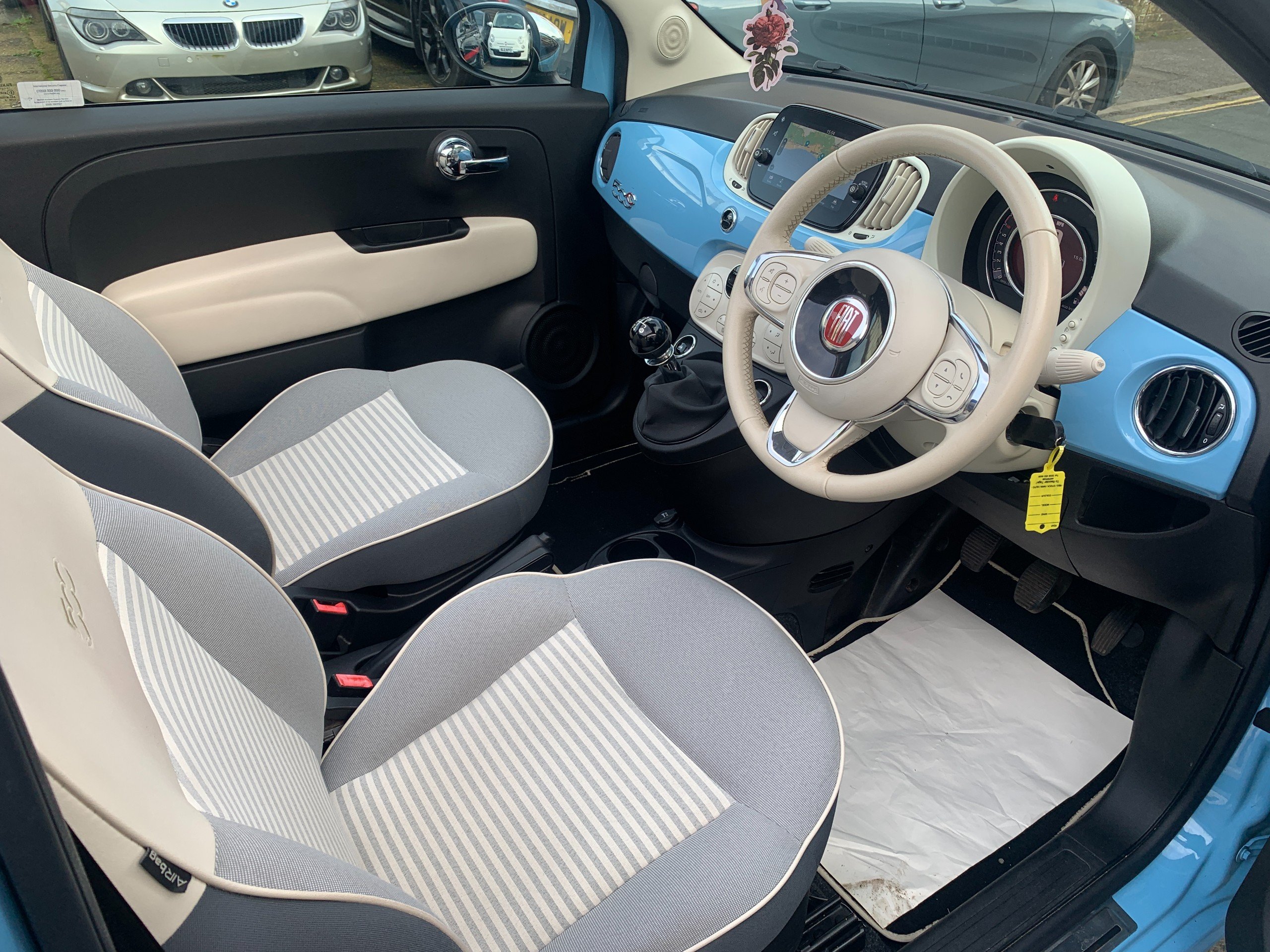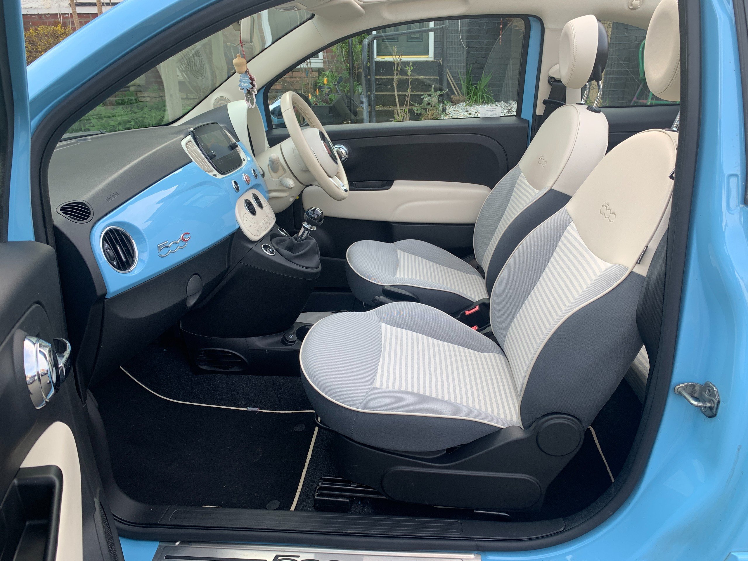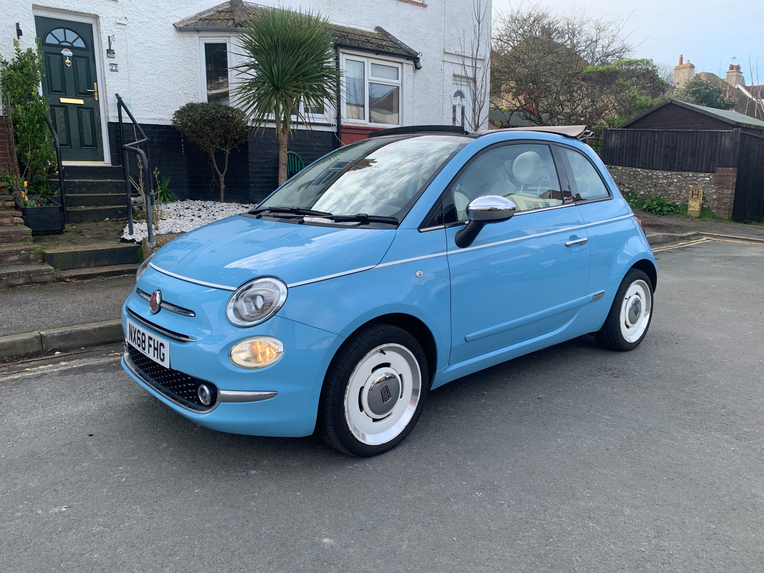 These cars are a limited edition tribute to the original Fiat 500 Spiaggina or 'Beach Car' also sometimes know as a 'Jolly', from the 50's and 60's, with the pastel blue coachwork and retro wheels and interior.